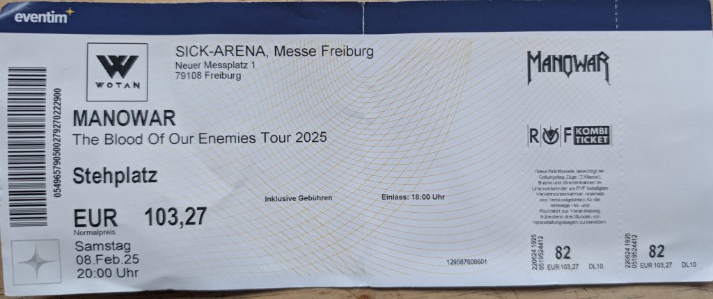 Am 08.02.2025 habe ich Manowar in Freiburg in der SICK Arena gesehen und gehört.